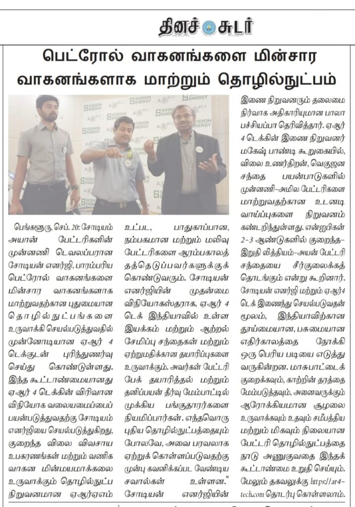 Launch of sodium ion batteries by Sodion energy with AR4Tech
